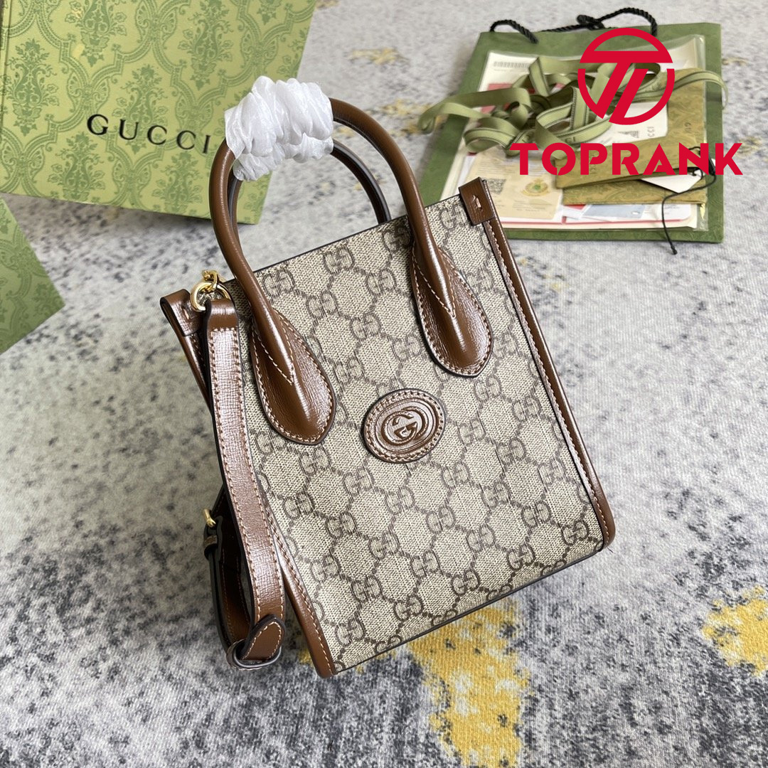 The Interlocking G has remained one of the most symbolic codes of the House since its introduction. The distinguishing emblem appears as a leather detail atop this tote. Completing the design's logo feel, the bag is crafted from monogram canvas.