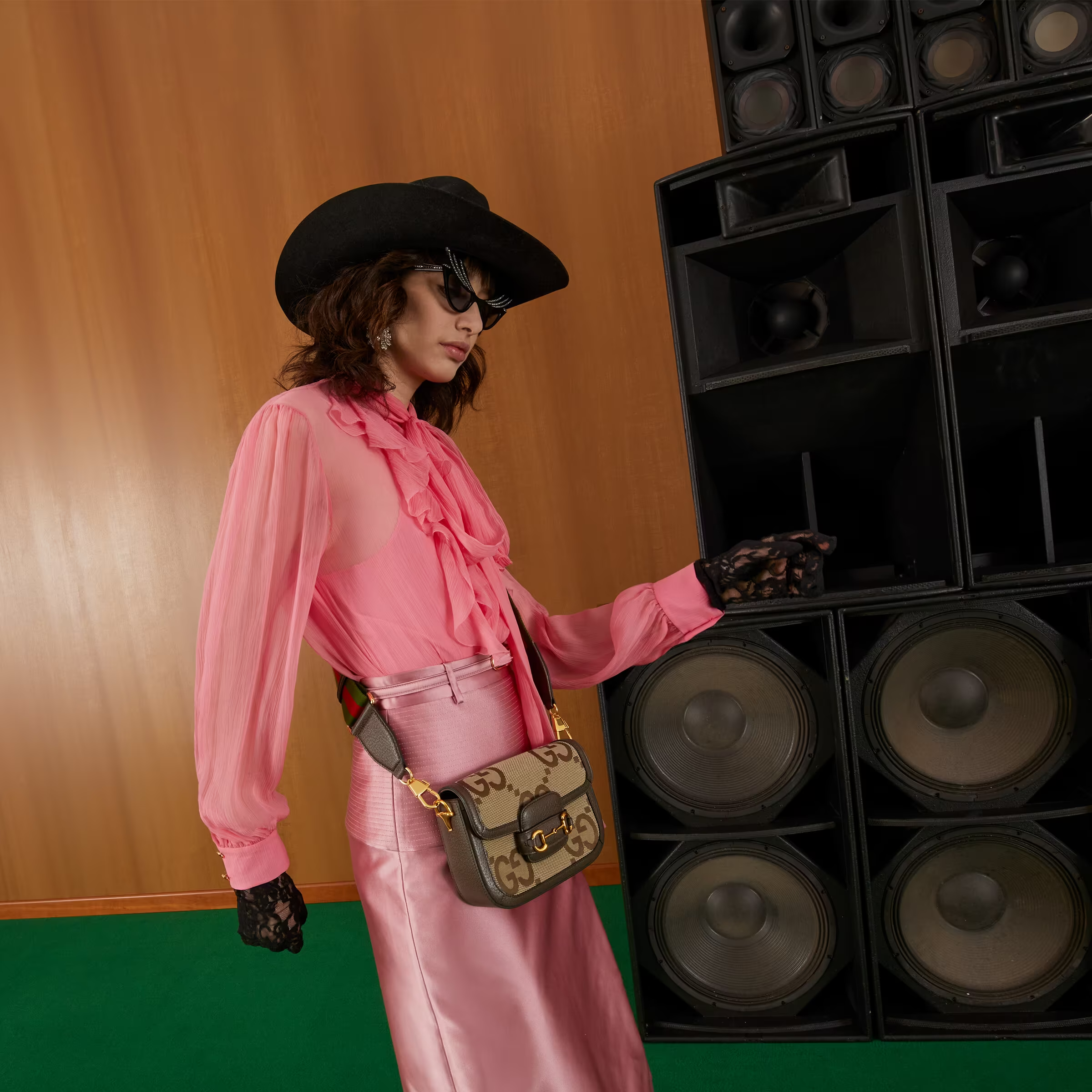 Instantly recognizable emblems of the brand, logos enrich designs in new and unexpected ways. Behind every logo lies the tradition and value of the House, an everlasting medium one can wear again and again. Following the idea of constant change and experimentation, different iterations of the logo have been presented each collection. The jumbo GG, a reimagined version of the historic monogram, defines this Gucci Horsebit 1955 mini bag.
