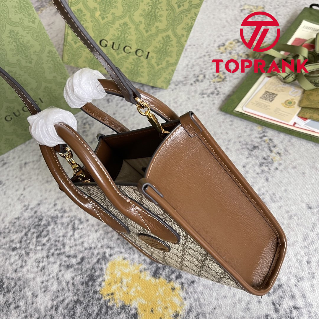 The Interlocking G has remained one of the most symbolic codes of the House since its introduction. The distinguishing emblem appears as a leather detail atop this tote. Completing the design's logo feel, the bag is crafted from monogram canvas.